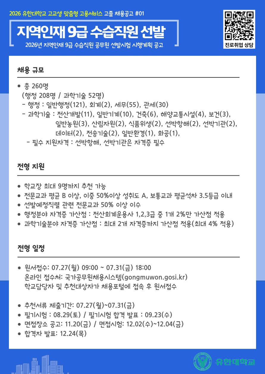 ★★2026 유한대학교 고교생 맞춤형 고용서비스 고졸 채용공고