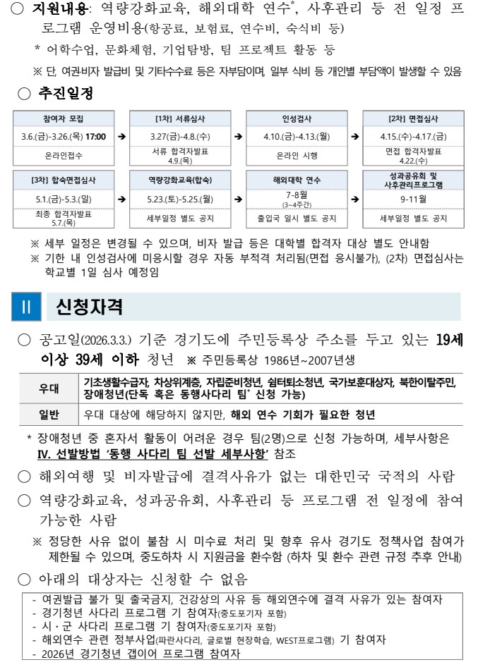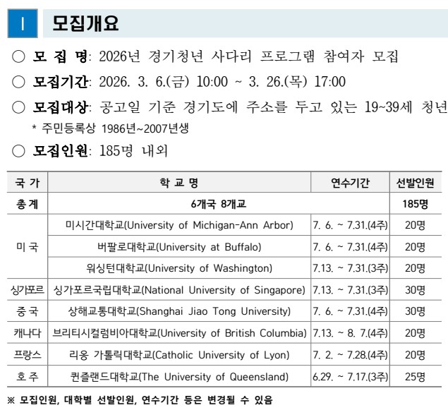 [해외대학연수] ★2026년 경기청년사다리 프로그램 안내★